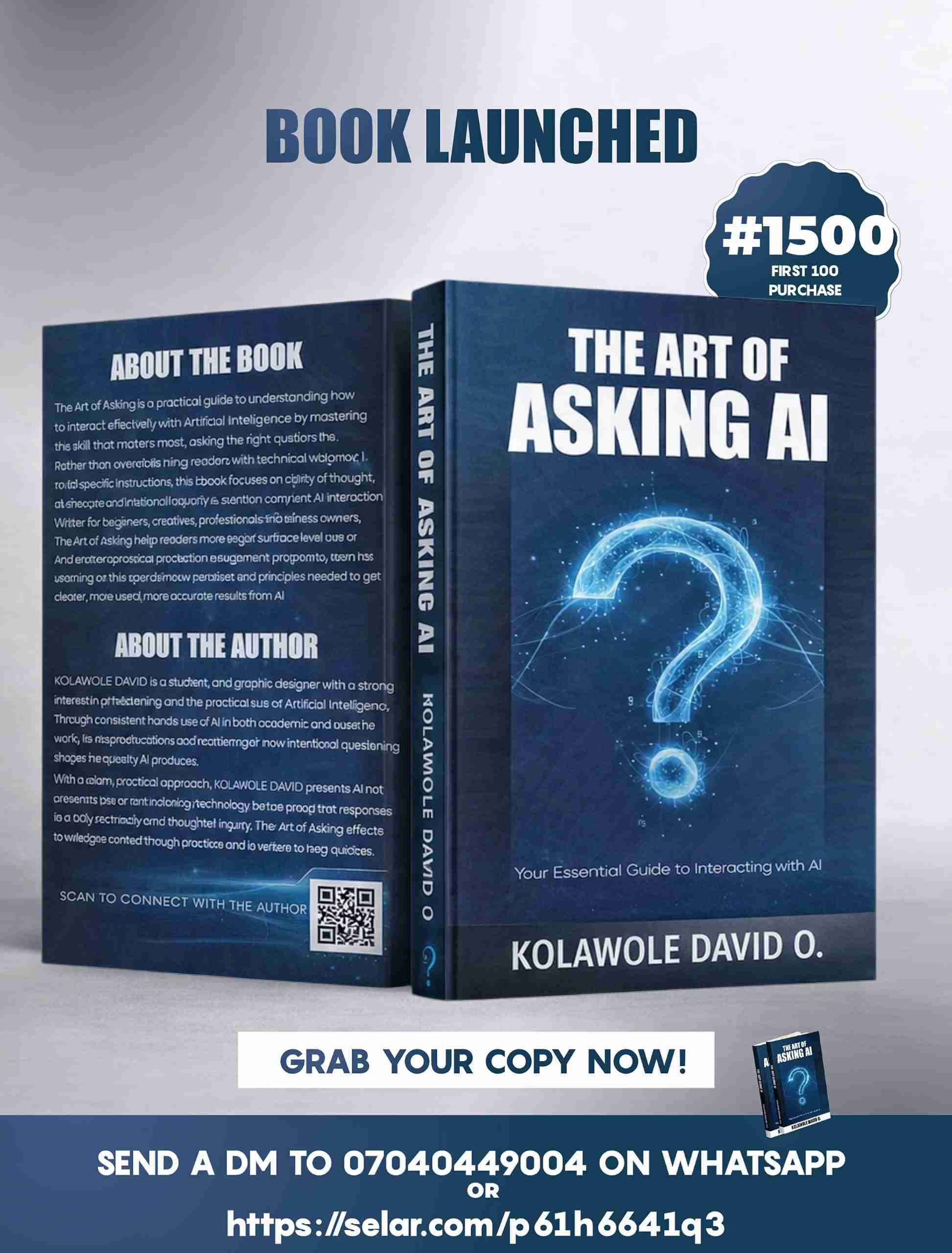? THE ART OF ASKING AI The Skill That Makes AI Actually Solve Problems AI is everywhere in 2026, yet most people are still confused, slow, and overwhelmed. Not because AI doesn�t work. But because they don�t know how to ask. AI only solves problems as well as the questions you give it. Vague questions ? vague answers Clear questions ? clear solutions This book fixes that. What This Book Helps You Solve AI giving you generic or useless answers Spending hours researching what AI could do in minutes Not knowing how to turn ideas into clear outputs Guessing, retrying, and still getting inconsistent results What You�ll Be Able To Do Ask questions that produce direct, usable solutions Use AI to think, plan, study, write, and decide faster Turn AI into a reliable problem-solving partner Get clarity instead of confusion, every time No tech talk. No theory overload. Just a repeatable way to get results. Who Needs This: � Students � Builders � Creatives � Professionals If you solve problems daily, this book is for you. ?? The gap in 2026 isn�t access to AI, it�s the ability to command it. Get Instant Access ? Buy here: https://selar.com/p61h6641q3 ? Confirm purchase/More enquiry: 07040449004